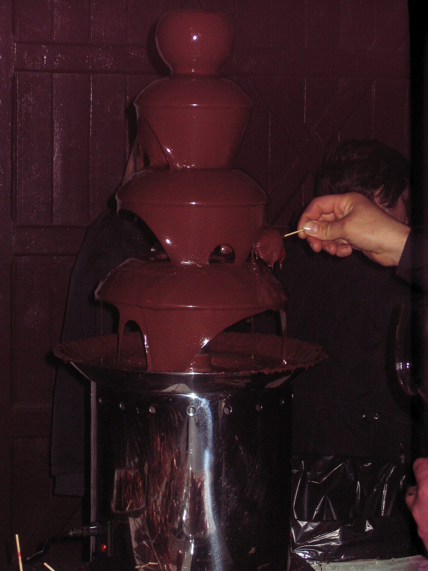 Inside the winery was an even bigger crowd spilling across several large chambers lined with tables dispensing wine and more goodies– like the Chocolate Fountain under which, fondue-like, one could bathe pieces of fresh fruit and other goodies…yum, yum, yum! And (have patience, we ARE meandering toward a Point…). In the Main Hall, by day probably the haunt of barrel-hauling forklifts, was a shoulder-to-shoulder crowd ebbing and flowing around a number of wine-pouring stations. Each one offered its current garnatxa for our tasting pleasure. Hence…the Night of the Garnatxes! Who Knew?