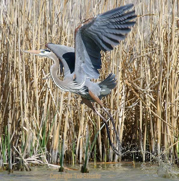 I spent some time online looking for a photo that captured what we had experienced, but none of the hundreds of photos I found captured the sense of looming closeness, mighty power, and fluid angularity that came from being only ten or fifteen feet away from this sudden, primeval takeoff. Together, though, they might convey a suggestion of the feeling, especially if you imagine yourself right next to the bird in the photo, so that the air would seem for a moment full of wings! It was Amazing! (click on the thumbnails for larger images)