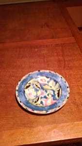 This year we invite your attention to a lovely blue plate left over from someone’s food contribution. It is ceramic, looks hand-painted from Indonesia, the sort of plate one would like to have back.