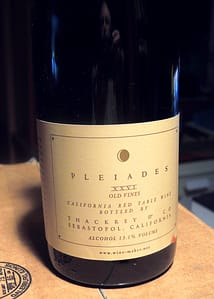 Pleiades is essentially a non-vintage “field blend” of sangiovese, pinot noir, viognier, zinfandel, syrah, and more, mostly from the Rossi vineyard in St. Helena in the heart of Napa Valley, but which may include fruit from different California regions and vintages. As a result he has developed the habit of naming each vintage in sequence; this weekend as the photo shows, we are pouring version XXVI , released last spring. It looks like pinot noir, but the complex flavors are not quite like any other single wine you have likely tasted. Come by and check it out!