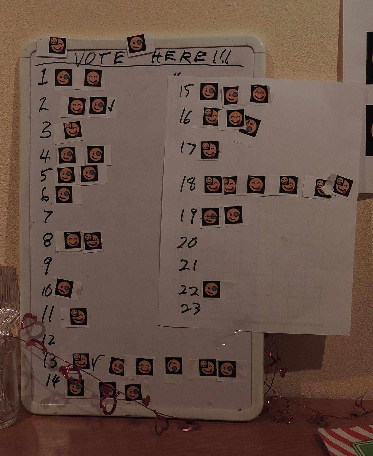Also, folks brought Amazing Food to share (sorry, no pix this year), so much so that few were able to sample everything! Best tasting dish went to Mary Beth with a lovely plate of Baked Shrimp Wrapped in Bacon (yum!), and it was Awesome!
