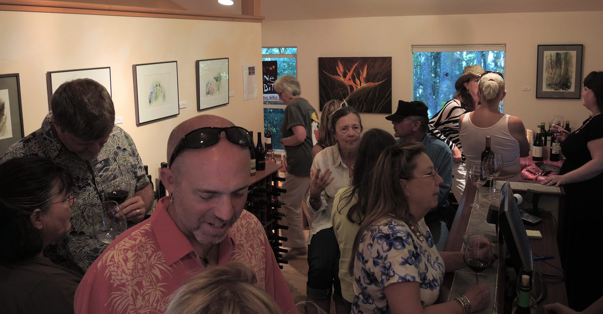 There is no particular reason why last Friday night should have  drawn such a blowout crowd, but it did; from opening at 4 o’clock, people just kept arriving! Ryan held down the fort alone in his usual stylish manner, and by the time we came over sometime after 5 the joint was Really jumpin’! It was like walking into one of those really cool parties in Movies where vast numbers of people are crammed together and everyone is engaged and alive and happy and…OMD!…like a…Singles Bar! But wait, hold on, no need to panic, many were just the Usual Suspects out for Friday night Happy Hour, and they found it here at the wine shop!