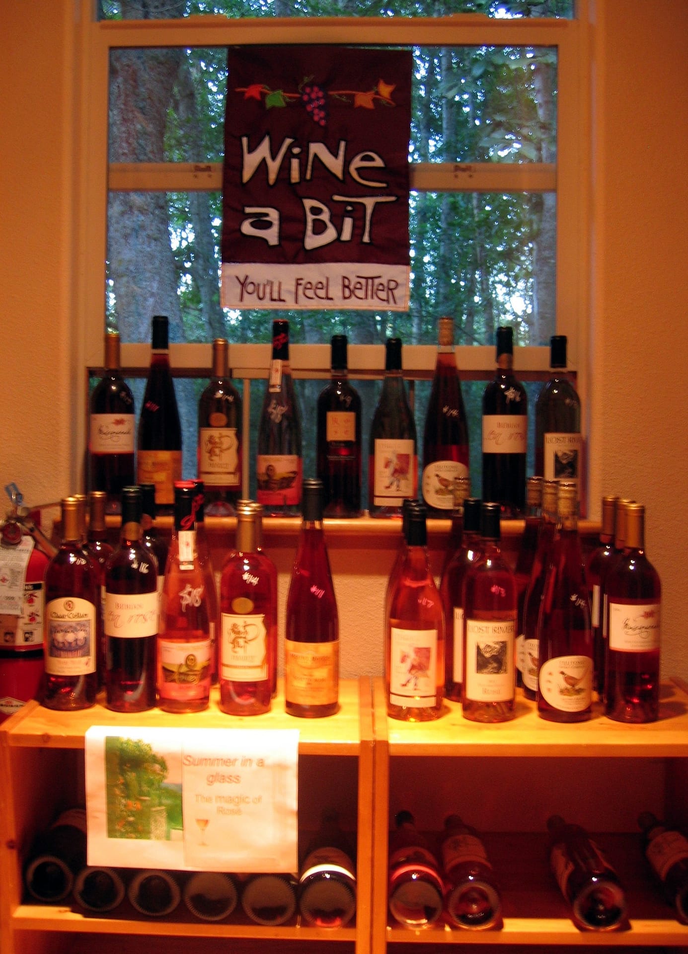 Yes, folks, the rosé shrine at the top of the stairs now now displays about about ten different rosés. Yesterday and today have qualified as Perfect Rosé Days– sunny with lots of big puffy white clouds accenting lots of clear Blue Sky, temperatures perfect (pushing 70), a light breeze, everything in Full Bloom.