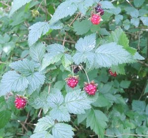 Salmonberries are an important food source for local wildlife in early summer. Here on the Island in most years they are quite watery and bland, i.e. “taste one and call it a Season.” By comparison flavors this year of both variations are the best we can recall, and every dog walk this week has involved a fair bit of salmonberry foraging.