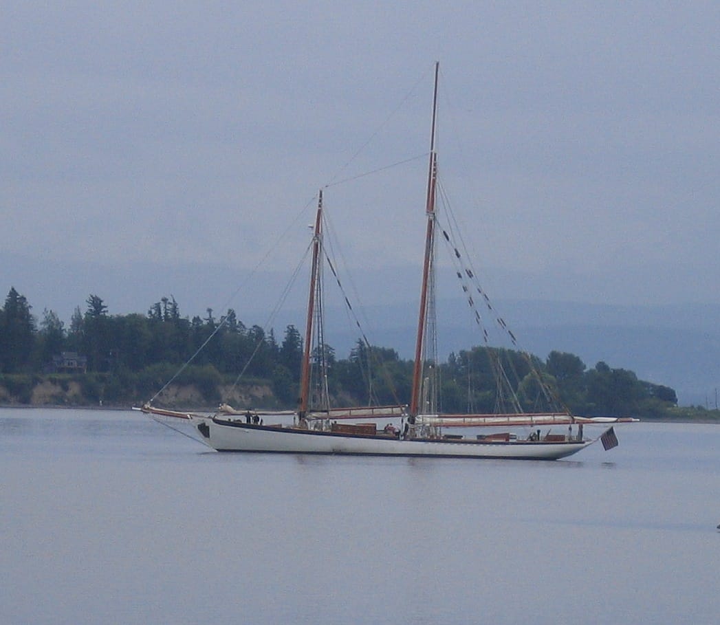 A few weeks ago I got a call from the folks at Schooner Zodiac; complications at Legoe Bay Winery created a need for a new wine tasting venue on Lummi Island to fit into their established San Juan Islands wine cruise, with its planned stop on Lummi Island TODAY (Thursday, June 28 as I write this). Heeding the call, we swung (swang?…swinged?) into action! I arranged with Bill and Jennifer Kimmerly of Masquerade Winery in Bellingham to come out and pour their wines for the event.Wines included their exceptional sparkling wine Effercescent Elephant, expertly blended in the traditional French style. a lovely Gewürztraminer, a Viognier, a rose, three cabs from different vintages and vineyards, and their popular syrah.
