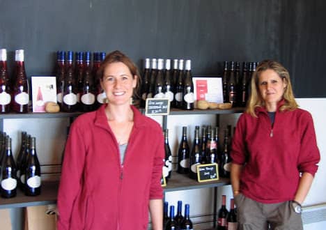 (from Nov 2011) We tasted a lot of delicious wines on our trip to France, and these (from La Rocaliere) were our favorites. Sisters Melanie and Severine took over the winery from their father and are putting their own fingerprints on the wines. Melanie (left) runs the business, and Severine (right) is the winemaker; her style is to interfere as little as possible with the natural development of the wines. She uses no oak at all; the red wines are fermented and aged in cement tanks, which, as we learned in Italy, iosolate the wines from noise, vibration, and temperature variation, and this gives the wines a noticeable stability and integration. Each of these wines, while unique to itself, clearly is made by the same hand; this sense of a particular winemaker’s style is one of the most fascinating characteristics of wine, and this Domaine has a definite and very appealing style. All of Rocaliere’s wines share the common characteristics of balance, naturalness, integration, and elegance. These wines really strike a chord for me, and I am delighted to find that they are available again! You gotta come by and try them!