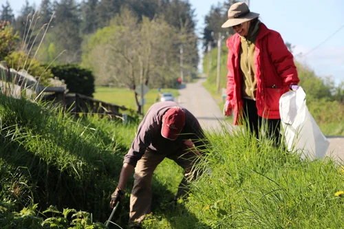 Each year around the first weekend of April is the annual Roadside Cleanup. Volunteers gather at the Grange around 0930 and have a little time to socialize and enjoy one of the pastries Janice makes for the event.
