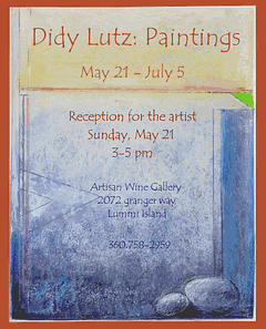 Didy Lutz was the artist for our first real Art Show about ten years ago. The poster shown here is one we made for Didy’s show, using one of her paintings that we have hanging in our living room. Didy and her husband Martin grew up in Switzerland in the thirties, met young, and eventually married. They lived all over the world as part of Martin’s career as a civil engineer. Their native language was High German, and they carried themselves with a warm and inviting Dignity.