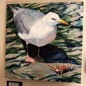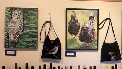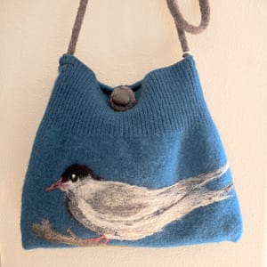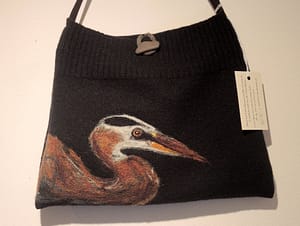 Lummi Island hosts three Artists’ Studio Tours a year: Memorial Day Weekend, Labor Day Weekend, and, of course, the Second Weekend in November (it’s a Long Story). This Tour we are hosting paintings of birds by Anne Gibert together with knitted bags with embroidered birds by Sue McCaslin.