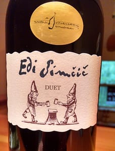 It differs from most of the SV wines in that it is definitely more expensive than most of their other offerings. The winemaker is Edi Simcic, whose vineyards and winery are in Slovenia near the Italian border between the Alps and the Aegean. Both the father and son winemakers and their wines are highly regarded for the quality of the fruit and the craftsmanship of the wines.