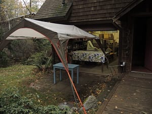 Last week’s debut of the new outdoors-at-the-wine-shop bread pickup went smoothly. Janice is set up at a table in the garage doorway with another rain-sheltered table nearby so both payment and pickup can be conducted with masks and social distancing and a bit of winter weather protection.
