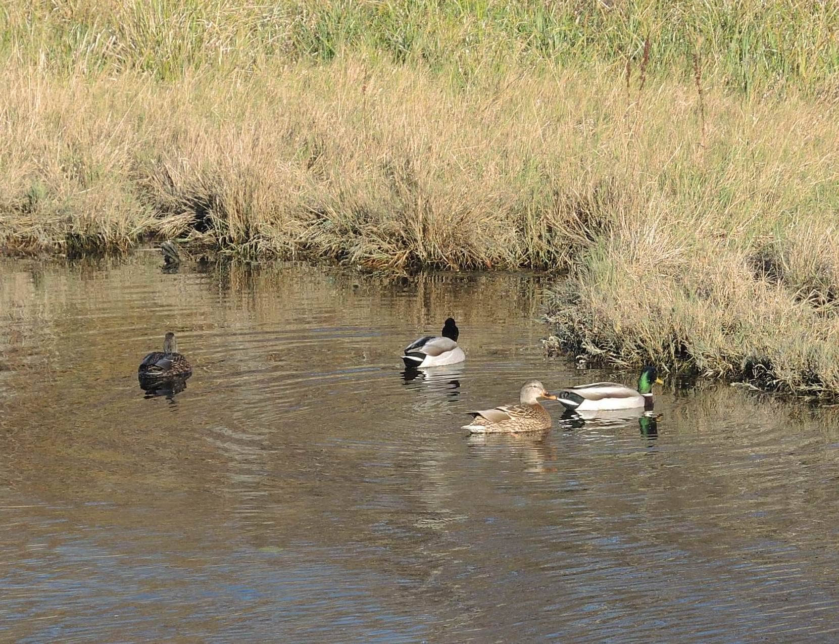 dscn1038 (Modified)Given the small rant above (I’ve been under a lots of stress lately), sometimes the best we can do is take comfort in the small glories of Everyday Life. Most days find us walking the dogs from our place down to Legoe Bay. Most of the year there is a group of Mallards (three pairs) resident in the little slough along Legoe Bay Road south of Tuttle. I don’t know enough about them to know if the same families are year-round residents (please post a comment if you know) or if there is a parade of transients. What I do know is that their life is appealing– a little paddling, a little browsing, a little sticking your head in the water and your tail in toward the sky, a little munching, a little napping…hey, even an occasional spin around the joint on wing! All in all, a pretty good life, and all in all, a pretty good reminder that we are so very lucky to be here in this place and, like our feathered friends, have each other and this lovely pond to swim in.