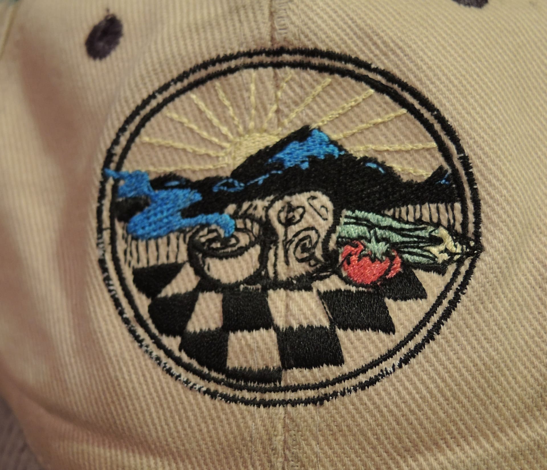 This old sew-on decal has lost most of its color over the years, and I don’t remember who did the graphic. It shows sunrise over Mt. Baker, a checkered table with (l to r) a cup of coffee, a loaf of bread, and fresh vegetables. And yes, I think there was more color back then…but it is still a cool image. Obviously graphics have gotten a lot less personal in fifteen years. But the idea is the same, here and everywhere: “come on in, sit down, and be nourished. And take a moment to savor this amazing view!”