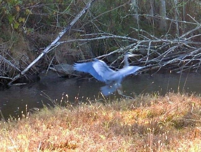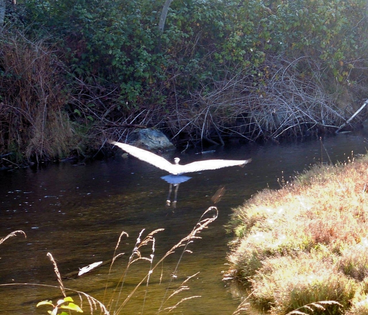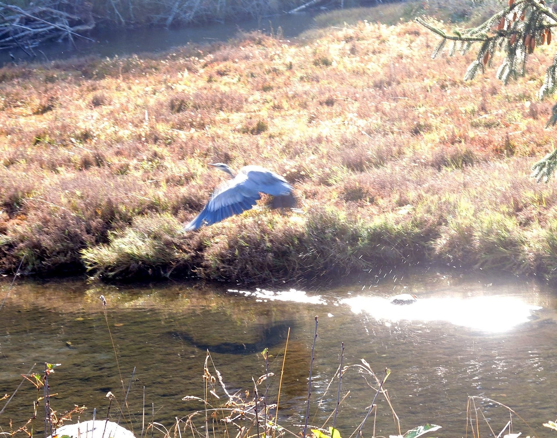 Combine that with midday doses of Indian Summer and the deepening blue of the autumn sky, and pretty much everything natural comes into bright relief on sunny October afternoons. In this case, the Great Blue was startled into flight by our intrusion, taking off and flying in a low arc toward the sun. Took several photos in a few seconds, not even looking, just hoping for the best, and were rewarded by this majestic sequence.
