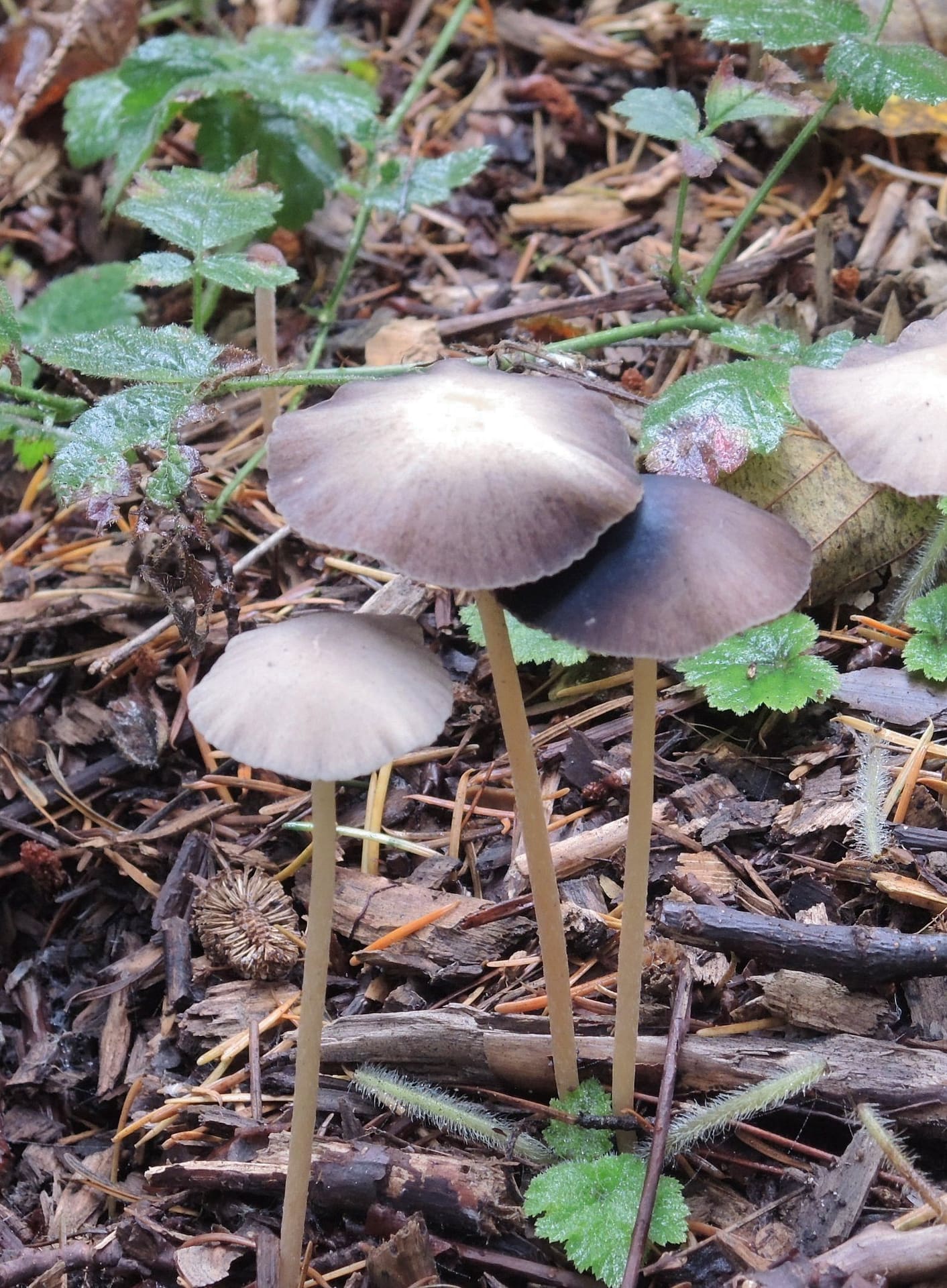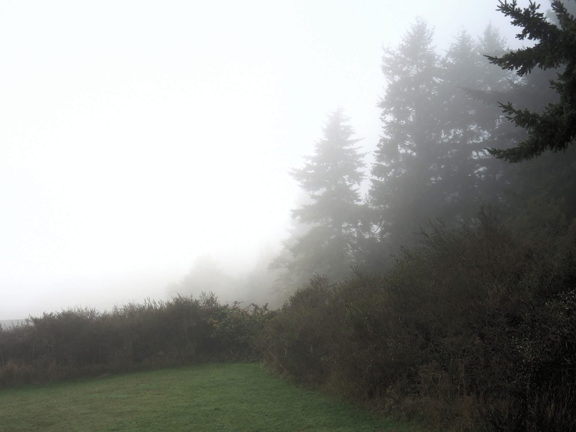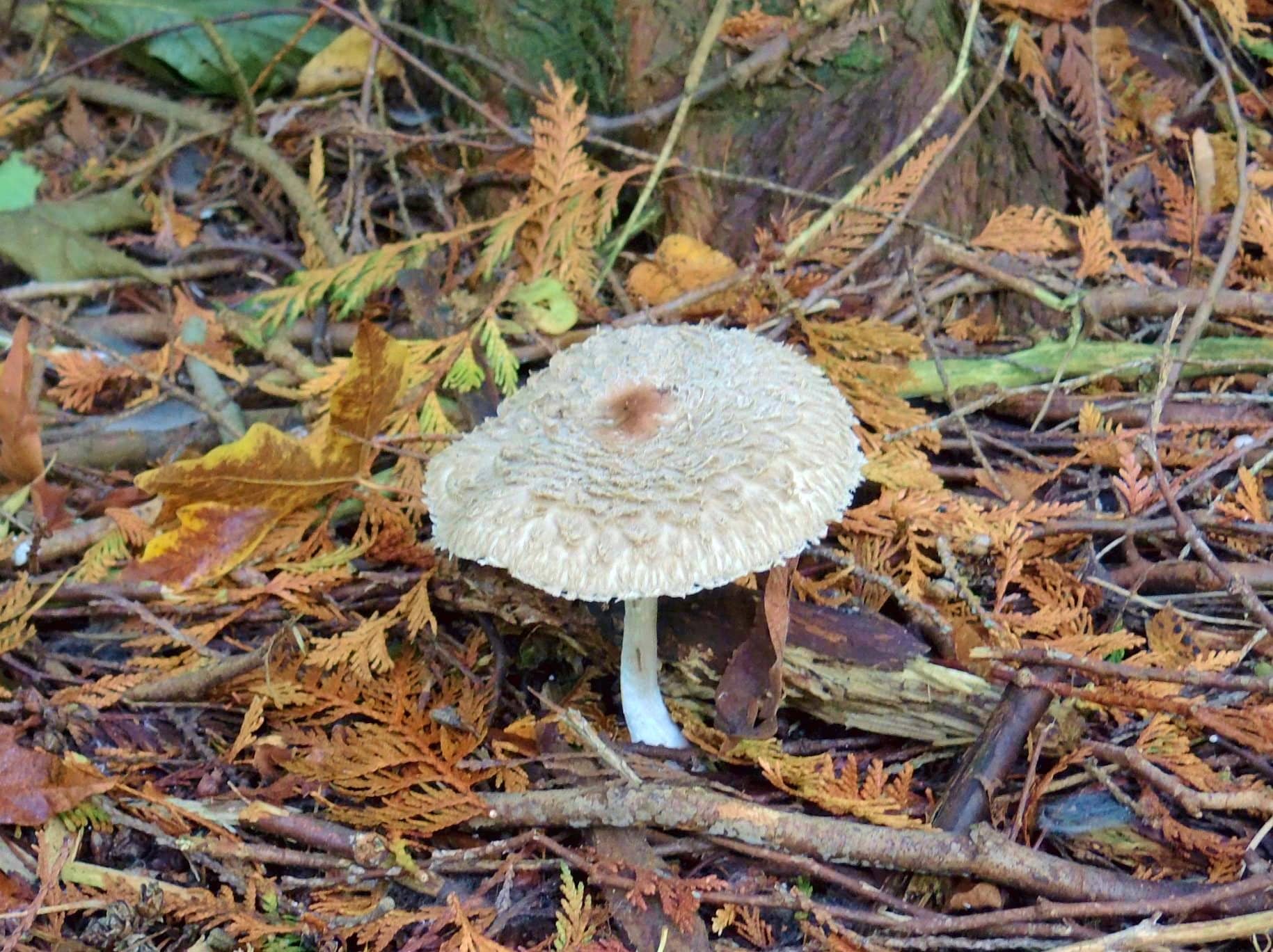 dscn0353 (Modified)It’s been the foggiest week I can remember around here, most of the day, every day for the past week. Cold, dark, and damp. A little trying for some of us, but as it turns out GREAT for mushrooms. A walk through Otto Farm yields an amazing array of exotic fungi, but even in our own neighborhood I found all of these (below) just today. Our forest-supporting, underground fungi thrive in this weather, making their presence known by sending up mushrooms –sort of “fungus flowers”– or “fruiting bodies,” of certain fungal organisms; their role is to produce spores and release them, after which they can melt back into the earth (as in last photo). Many, of course, are delicious to eat; others are deadly poisonous; and still others can turn you into Alice chasing the White Rabbit.