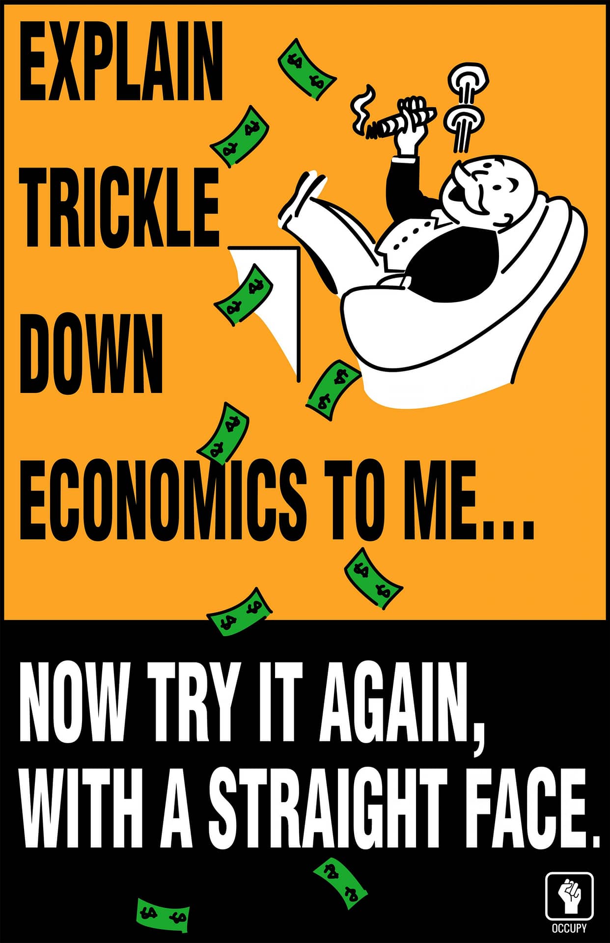 explaintrickledownFor most of the last fifty years, businesses have perpetuated the myth that local communities reap such huge benefits when businesses decide to locate there that communities should offer huge subsidies to attract them, including tax breaks, environmental compromises, or special prices on public utilities. The supposed community benefits are “jobs,” which are only a “benefit” in the very rare case when such a business arrival coincides precisely with the skills of the currently unemployed labor pool in the community. But in the general case, the entire infrastructure of the host community will have to expand to accommodate the new workers, their families, their utility needs, their cars— i.e., the phenomenon we all know as sprawl, which most rational people would agree is something most devoutly to be eschewed. So the last thing a community should do is subsidize business with sweet deals! Look for variations on the “business is doing us a favor by locating here so hey, let’s sell them our only cow for a handful of genetically engineered beans!” argument in your mailbox any minute.