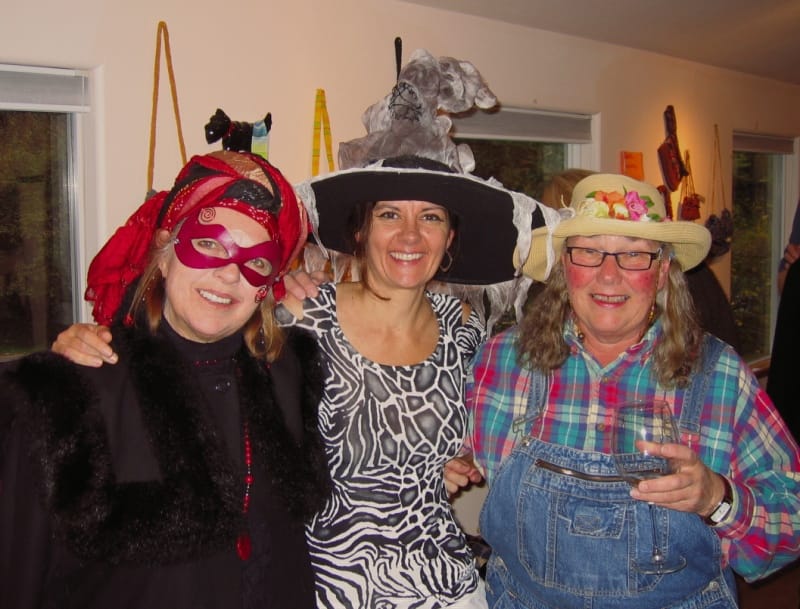 Despite the low numbers in attendance, I have to say that the quality of conversation and cameraderie reached a new qualitative high. So here is a special thanks to Mary Jane, Capella, and Judy O (this photo is from last Halloween with Capella, Leere, and Mary Jane…sorry no photos of Judy) on Friday night for a lengthy and enjoyable salon, and special thanks to Randy for wasting most of a perfectly good Saturday with us, including taking it upon herself to make sure everyone got several chances to taste the Betz wines…! and yes, folks, they were very, very good; imho, this very difficult 2010 Washington vintage more closely mimicked the climate of the southern Rhone, yielding more Old World-like wines with sharper varietal delineation and brighter acidity than usual. They may not earn the big ratings scores they have in the past, but I suspect that they may come closer to the ideal that winemaker extraordinaire Bob Betz has been continually striving toward.