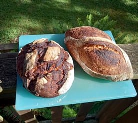 Semolina w/ Fennel & Raisins – A levain bread made with bread flour, semolina and some fresh milled whole wheat. A little butter for a tender crumb and fennel seeds and golden raisins round out the flavors that go really well with meats and cheese – $5/loaf