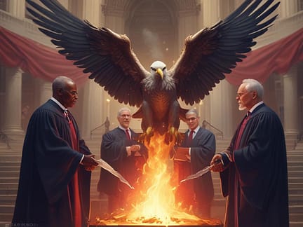 Heritage Foundation President celebrates the death of Liberty with Supreme Court AI image from Davinci