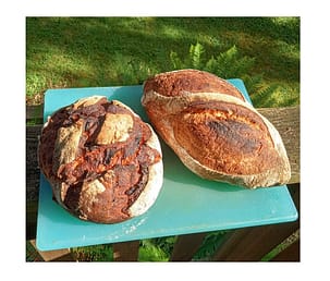 Rosemary Olive Oil – Also made with pre-fermented dough like the Multi Grain and then mixed with bread flour and freshly milled white whole wheat for additional flavor and texture. Fresh rosemary from the garden and olive oil to make for a nice tender crumb and a nice crisp crust. A great all around bread – $5/loaf