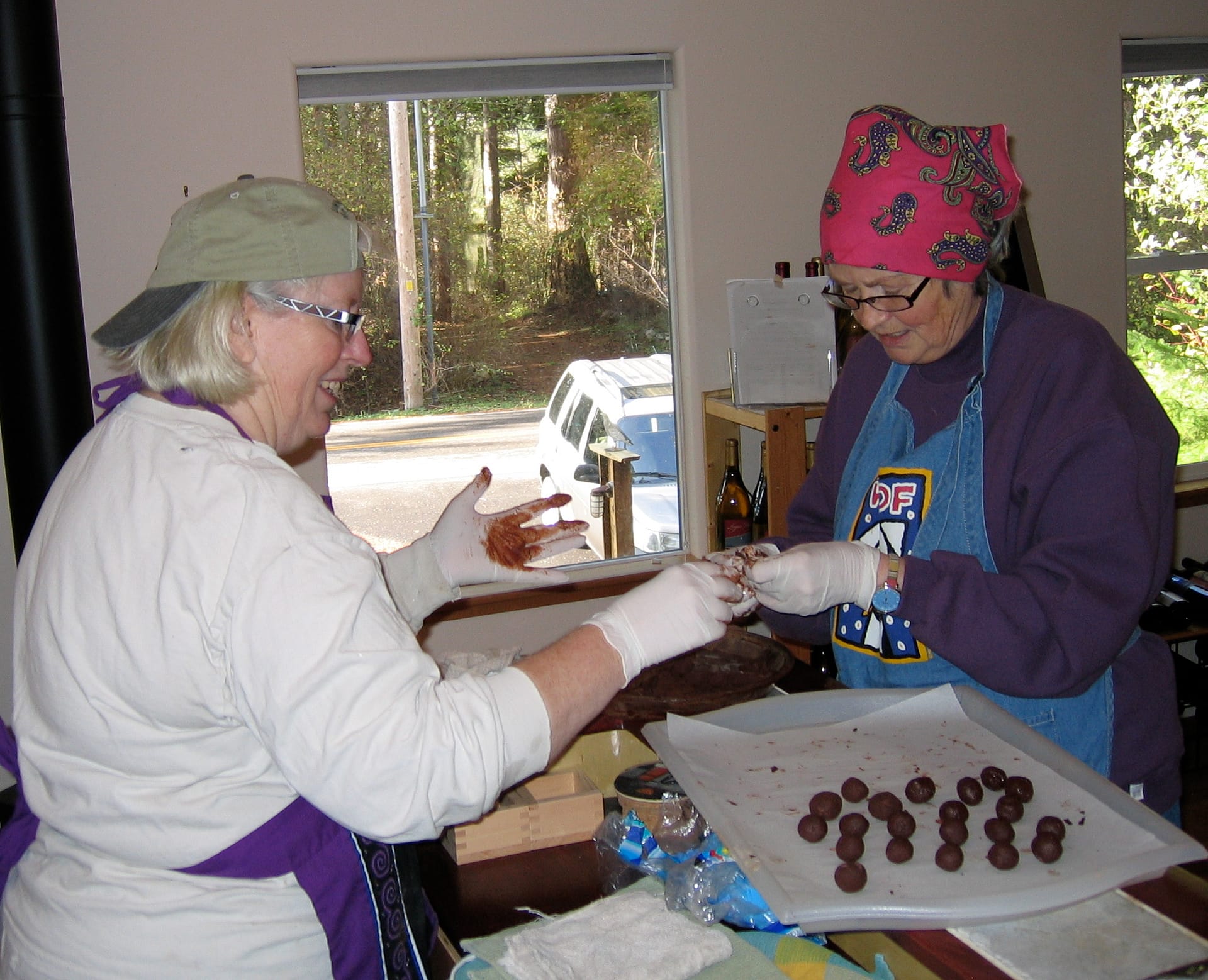 Also, though they say you never want to see how laws or sausages are made, we all like to see how Truffles are made…here are Janice and Pat in the Heart of Creation. Anyone who tasted them knows they tasted a little Slice of Heaven! Mmm-mmm!