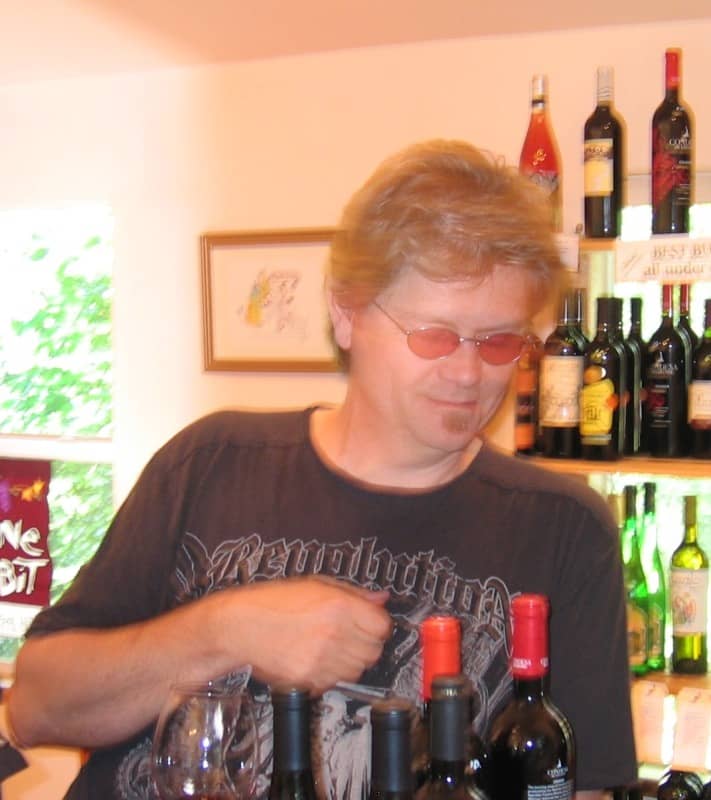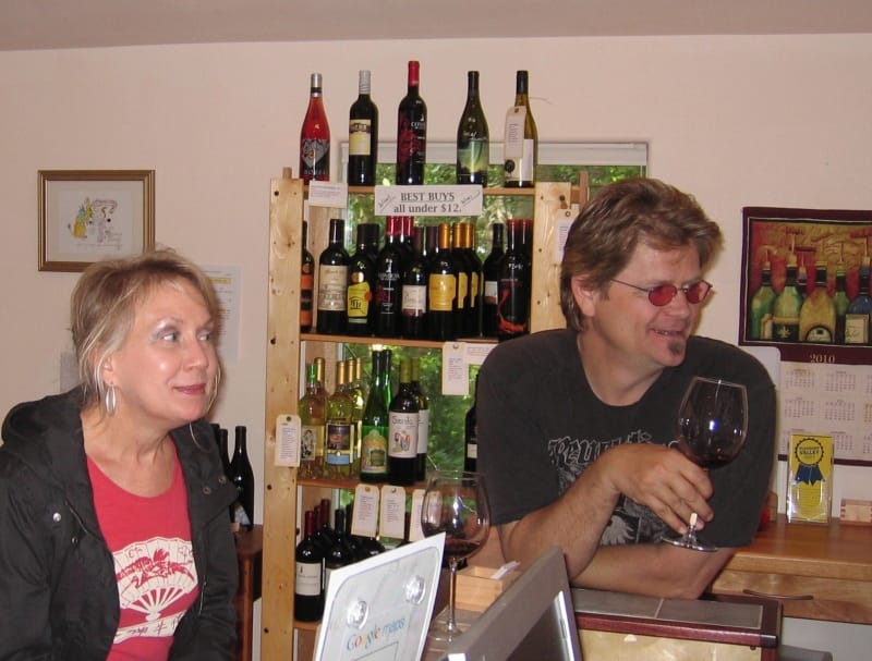 In addition (as if that weren’t enough, LAST weekend David and Kier brought over a bottle of an Unknown Wine (one of a substantial number sacrificed for the evening), and it was Pretty Tasty: Dynasty Cellars “DC3” bordeaux blend. It comes in a nicely designed bottle, and is well-crafted –lots of oak– and what’s more, it is made less than a mile away over on Haxton Rd., and the phone number was on the bottle! So of course I called the number and left a message. Twenty minutes later Peter the winemaker called, and on Sunday Pat and I and David and Kier and Brian and Leigh make the trek over to taste Peter’s wines, and came home with a case. All I can say is, you will like it!